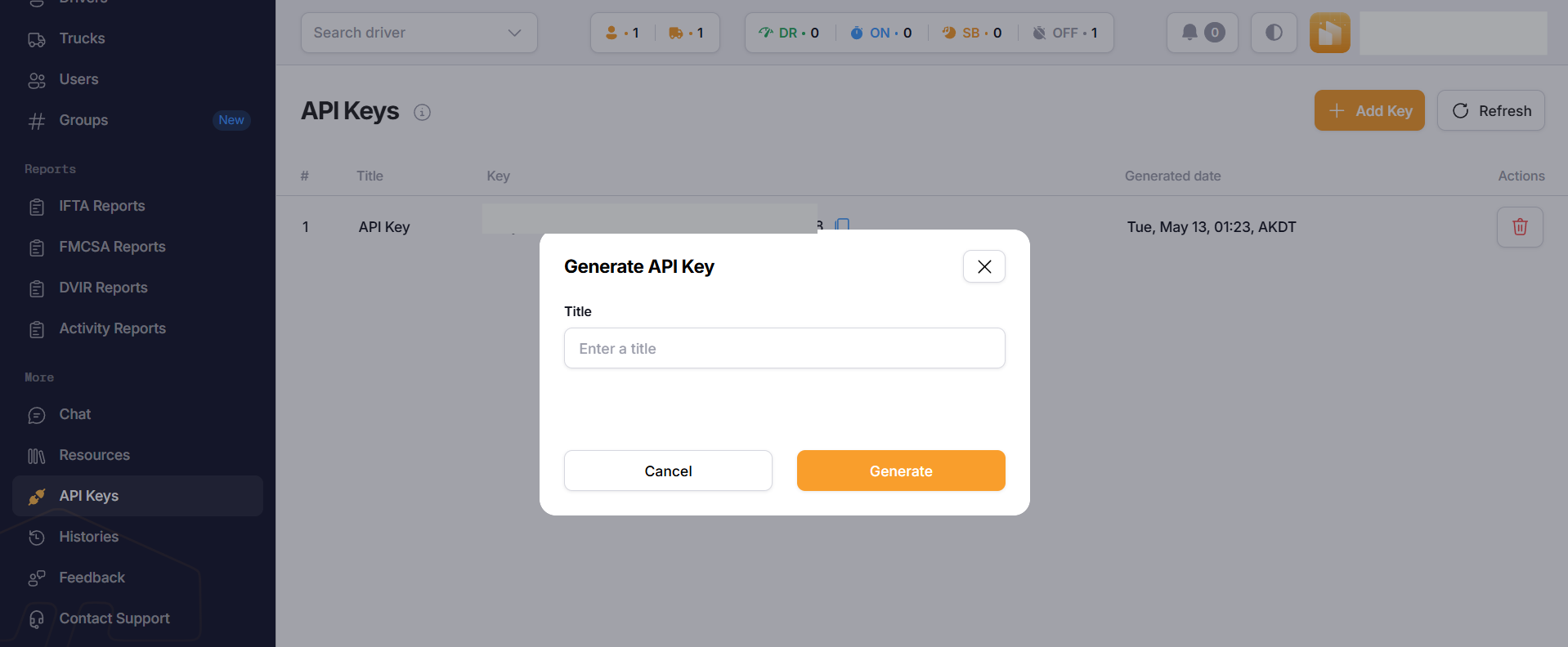 5. Now you can share your API key, which gives access to 3rd party integrations to access your units' tracking data.